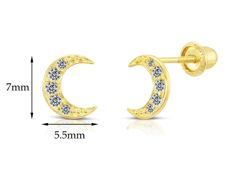 10k Yellow Gold Moon Stud EarringsMetal: Gold Material Purity: 10k Stone: Cubic Zirconia Earring Closure: Post with Screw Back- Regular price
