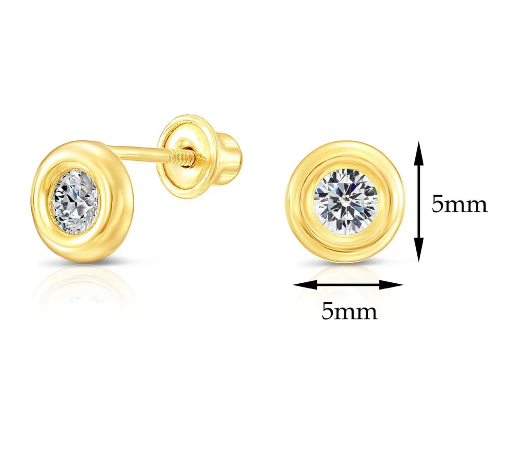 10k Yellow Gold Round Bezel-Set Stud EarringsMetal: Gold Material Purity: 10k Stone: Cubic Zirconia Earring Closure: Post with Screw Back- Regular price