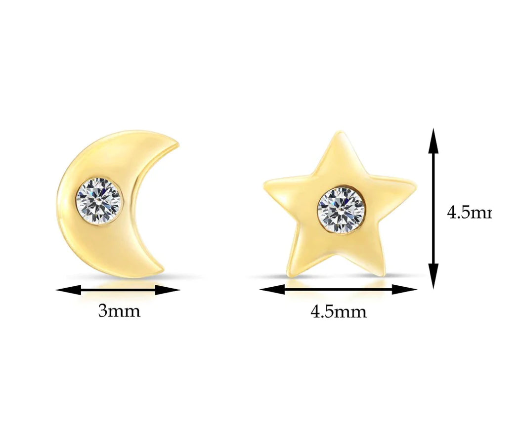 10k Yellow Gold Star and Moon Stud EarringsMetal: Gold Material Purity: 10k Stone: Cubic Zirconia Earring Closure: Post with Screw Back- Regular price
