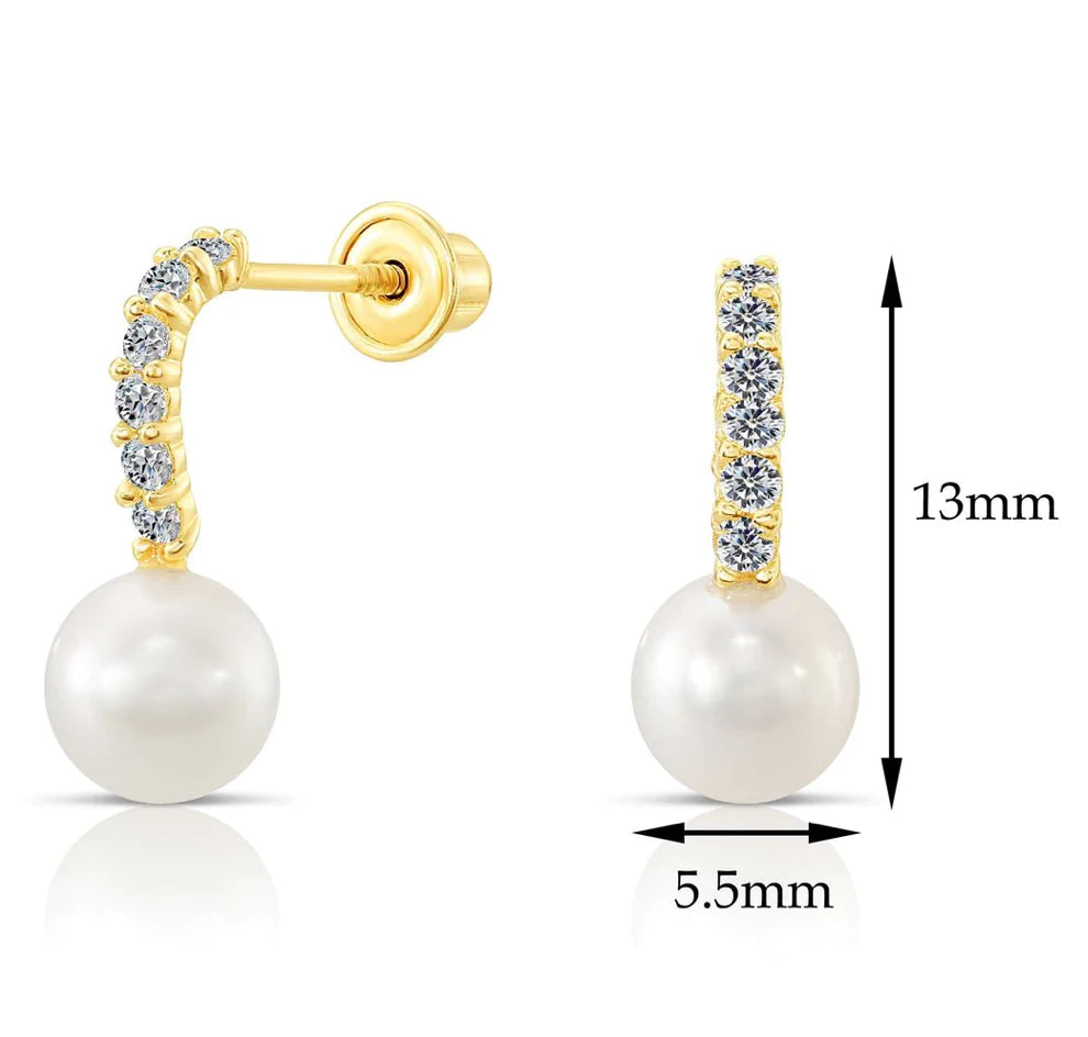 10k Yellow Gold Freshwater Pearl Stud EarringsMetal: Gold Material Purity: 10k Stone: Cubic Zirconia Earring Closure: Post with Screw Back- Regular price