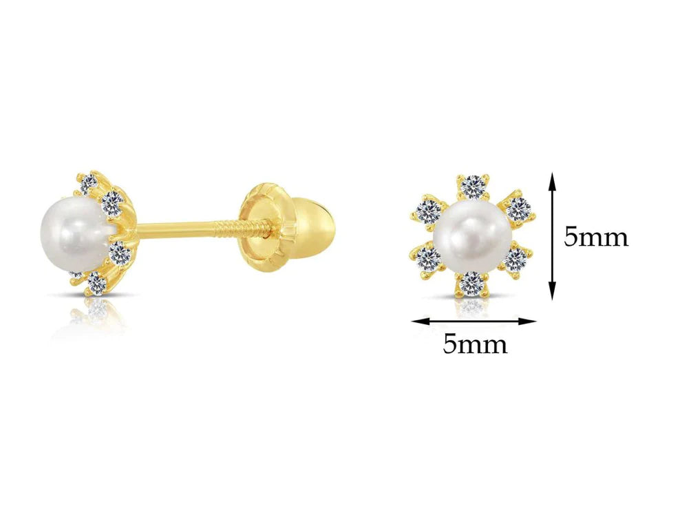 10k Yellow Gold Flower Freshwater Pearl Stud EarringsMetal: Gold Material Purity: 10k Stone: Cubic Zirconia Earring Closure: Post with Screw Back- Regular price