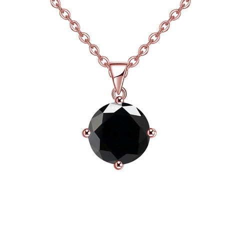18K Rose Gold 1/2 Carat Created Black Sapphire Round Stud Necklace Plated 18 inch