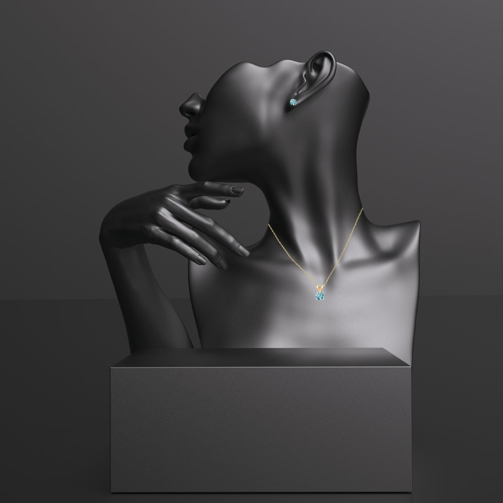 18K Yellow Gold 4ct Created Aquamarine CZ Round 18 Inch Necklace and Earrings Set PlatedNecklace come elegantly gift boxed. This is amazing fashion style jewelry designed in France. Metal: Yellow Gold Plated Gem type: Created Aquamarine CZ Stone shape: Round Stone weight: 4 Carat Stone color: Aquamarine Setting: Prong Setting Number of stone: 2 Cut Grade: Excellent Country of Origin: United States Aquamarine is not only the birthstone for March, but the gem is also given as a present on the 19th wedding anniversary....- Regular price