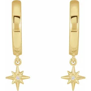 14K Yellow Gold .0075 CTW Natural Diamond Celestial Hinged Hoop EarringsWeight: 2.154 DWT (3.35 grams) Earring Closure: Hinged Post Earring Type: Hoop Selling Unit of Measure: PR Gender: Ladies Plating Type: N/A Surface Finish: Polished Primary Stone Shape: Round Primary Stone Size: 1 mm Diamond Clarity: I1 Diamond Color: G-H Total Diamond Carat Weight: .0075 CTW Primary Stone Count: 2-stone Primary Stone Type: Natural Diamond Earring Dimensions: 11.42x6.13 mm- Regular price