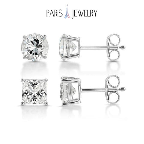 Paris Jewelry 18k White Gold 2 Pair Created White Sapphire 4mm, 6mm Round & Princess Cut Stud Earrings PlatedParis Jewelry 18k White Gold 2 Pair Created White Sapphire 4mm, 6mm Round & Princess Cut Stud Earrings PlatedParis Jewelry 18k White Gold 2 Pair Created White Sapphire 4mm, 6mm Round & Princess Cut Stud Earrings PlatedParis Jewelry 18k White Gold 2 Pair Created White Sapphire 4mm, 6mm Round & Princess Cut Stud Earrings Plated