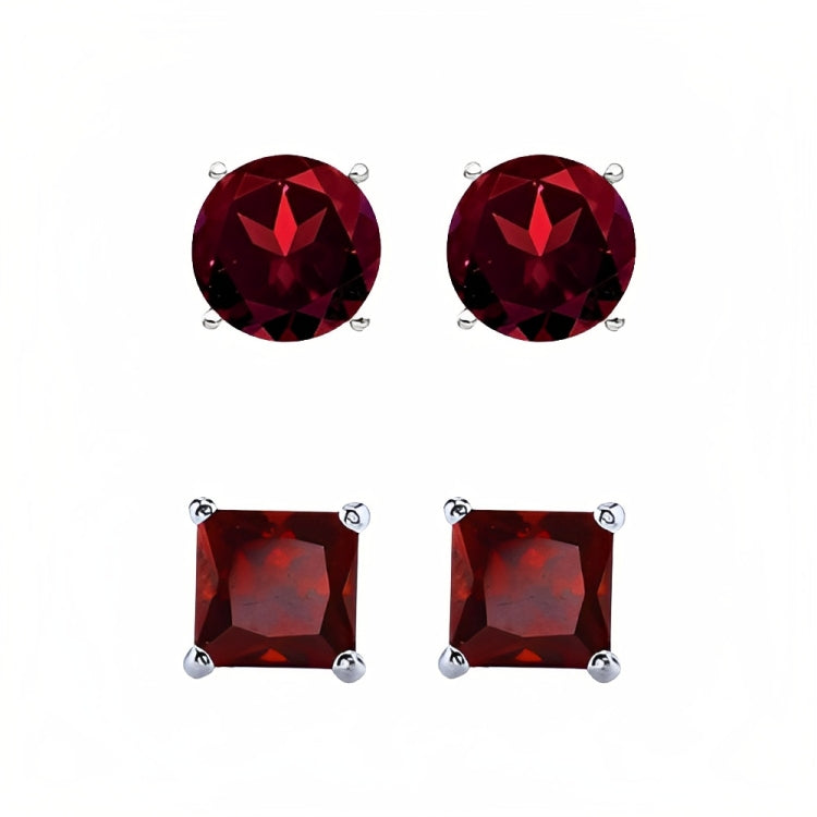 Paris Jewelry 18k White Gold 2 Pair Created Garnet 6mm Round & Princess Cut Stud Earrings PlatedEarrings come elegantly gift boxed. This is amazing fashion style jewelry designed in France. Metal: White Gold Plated Gem Type: Created Garnet CZ Earrings Stone Shape: Round & Square Size: 6mm Stone Color: Red Setting: Prong Setting Number of Stone: 4 Style: Stud Cut Grade: Excellent Closure: Push back Country of Origin: United States- Regular price