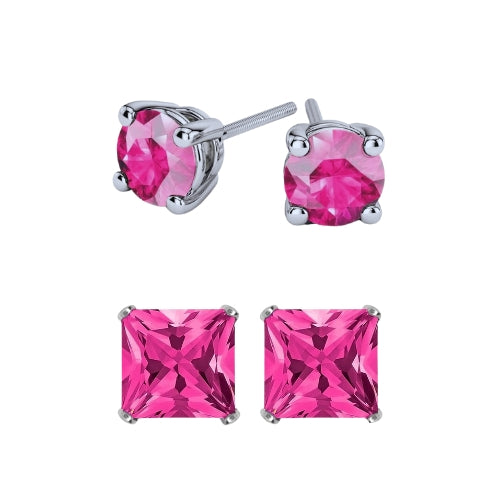 Paris Jewelry 18k White Gold 2 Pair Created Pink Sapphire 6mm Round & Princess Cut Stud Earrings PlatedEarrings come elegantly gift boxed. This is amazing fashion style jewelry designed in France. Metal: White Gold Plated Gem Type: Created Pink Sapphire CZ Earrings Stone Shape: Round & Square Size: 6mm Stone Color: Pink Setting: Prong Setting Number of Stone: 4 Style: Stud Cut Grade: Excellent Country of Origin: United States- Regular price