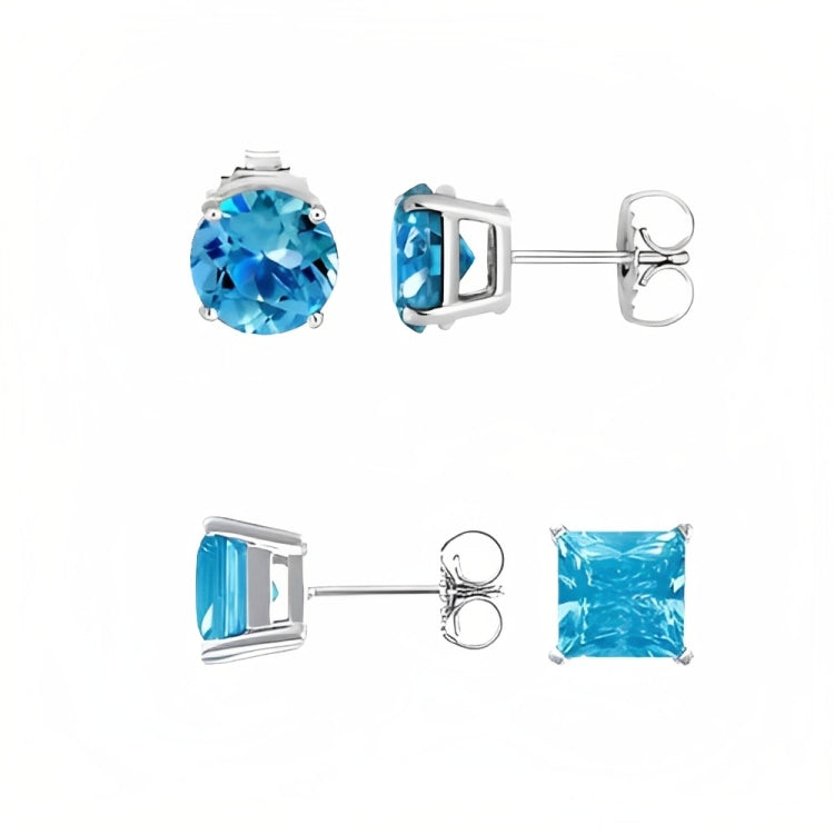 Paris Jewelry 18k White Gold 2 Pair Created Blue Topaz 6mm Round & Princess Cut Stud Earrings PlatedEarrings come elegantly gift boxed. This is amazing fashion style jewelry designed in France. Metal: White Gold Plated Gem Type: Created Blue Topaz CZ Earrings Stone Shape: Round & Square Size: 6mm Stone Color: Blue Setting: Prong Setting Number of Stone: 4 Style: Stud Cut Grade: Excellent Closure: Push back Country of Origin: United States- Regular price