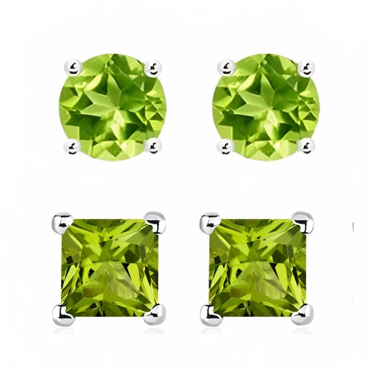 Paris Jewelry 18k White Gold 2 Pair Created Peridot 6mm Round & Princess Cut Stud Earrings PlatedEarrings come elegantly gift boxed. This is amazing fashion style jewelry designed in France. Metal: White Gold Plated Gem Type: Created Peridot CZ Earrings Stone Shape: Round & Square Size: 6mm Stone Color: Green Setting: Prong Setting Number of Stone: 4 Style: Stud Cut Grade: Excellent Closure: Push back Country of Origin: United States- Regular price