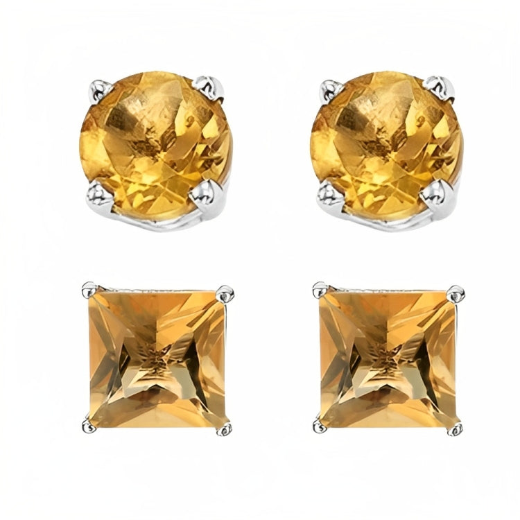 Paris Jewelry 18k White Gold 2 Pair Created Citrine 6mm Round & Princess Cut Stud Earrings PlatedEarrings come elegantly gift boxed. This is amazing fashion style jewelry designed in France. Metal: White Gold Plated Gem Type: Created Citrine CZ Earrings Stone Shape: Round & Square Size: 6mm Stone Color: Yellow Setting: Prong Setting Number of Stone: 4 Style: Stud Cut Grade: Excellent Closure: Push back Country of Origin: United States- Regular price