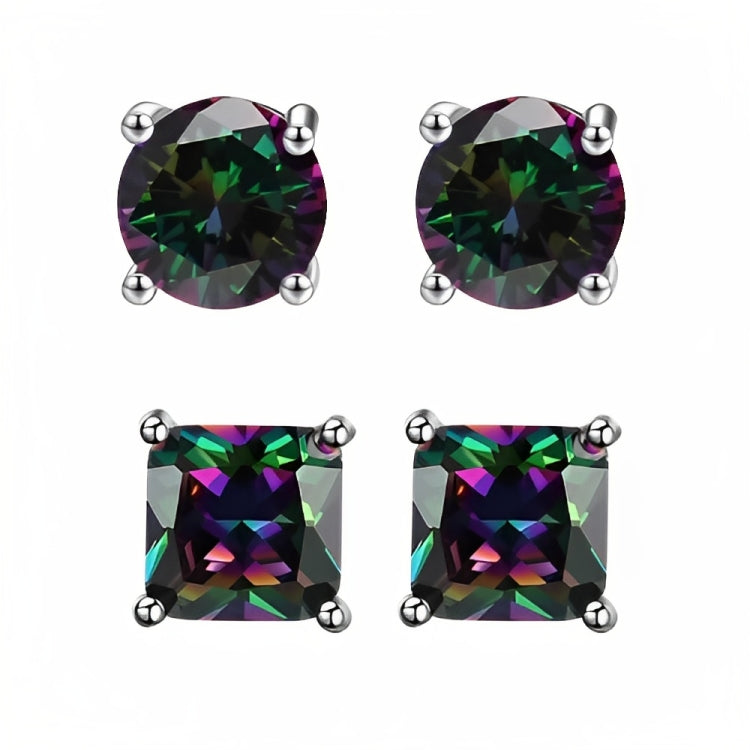Paris Jewelry 18k White Gold 2 Pair Created Mystic 6mm Round & Princess Cut Stud Earrings PlatedEarrings come elegantly gift boxed. This is amazing fashion style jewelry designed in France. Metal: White Gold Plated Gem Type: Created Mystic CZ Earrings Stone Shape: Round & Square Size: 6mm Stone Color: Multicolor Setting: Prong Setting Number of Stone: 4 Style: Stud Cut Grade: Excellent Closure: Push back Country of Origin: United States- Regular price