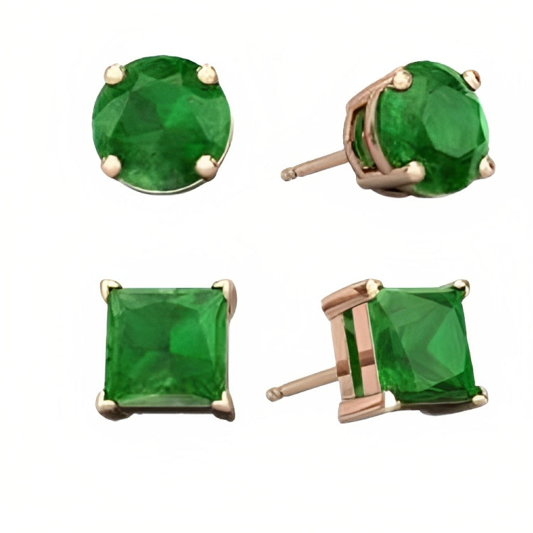 Paris Jewelry 18k Rose Gold 2 Pair Created Emerald 4mm, 6mm Round & Princess Cut Stud Earrings PlatedEarrings come elegantly gift boxed. This is amazing fashion style jewelry designed in France. Metal: Rose Gold Plated Gem Type: Created Emerald CZ Earrings Stone Shape: Round & Square Size: 6mm Stone Color: Green Setting: Prong Setting Number of Stone: 4 Style: Stud Cut Grade: Excellent Closure: Push back Country of Origin: United States- Regular price