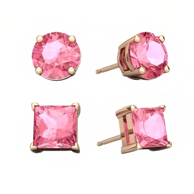 Paris Jewelry 18k Rose Gold 2 Pair Created Tourmaline 4mm, 6mm Round & Princess Cut Stud Earrings PlatedEarrings come elegantly gift boxed. This is amazing fashion style jewelry designed in France. Metal: Rose Gold Plated Gem Type: Created Tourmaline CZ Earrings Stone Shape: Round & Square Stone Color: Pink Setting: Prong Setting Number of Stone: 4 Style: Stud Cut Grade: Excellent Closure: Push back Country of Origin: United States- Regular price