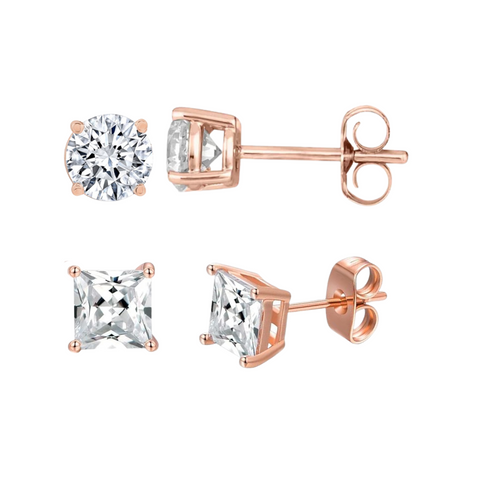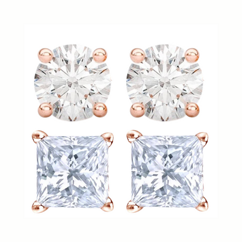 • You'll Receive a Pair of Round Studs and a Pair of Princess Cut Stud Earrings.