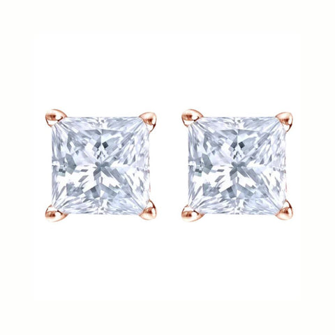 Earrings come elegantly gift boxed. Metal: 14k Rose Gold Gem Type: White Diamond Stone Shape: Round And Princess Number of stones: 4 Diamond Carat: 1/4Ct, 1/2Ct, 1Ct, 2Ct, 3Ct Style: Stud...