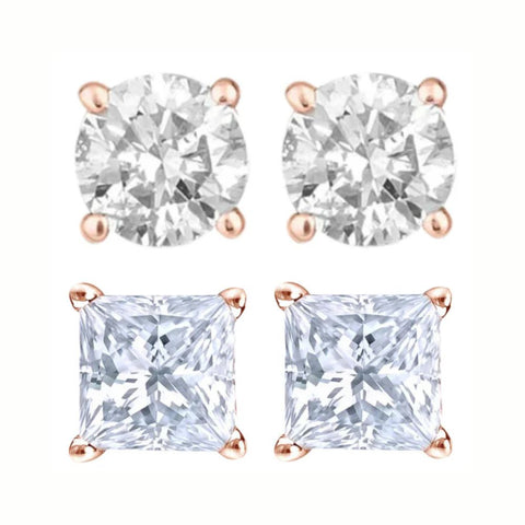 - You'll Receive a Pair of Round Studs and a Pair of Princess Cut Stud Earrings.
