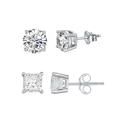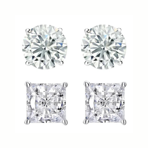 - You'll Receive a Pair of Round Studs and a Pair of Princess Cut Stud Earrings.
