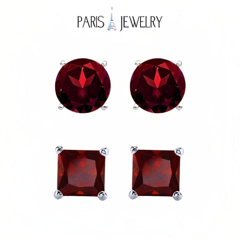 Paris Jewelry 18k White Gold 2 Pair Created Garnet 4mm, 6mm Round & Princess Cut Stud Earrings PlatedParis Jewelry 18k White Gold 2 Pair Created Garnet 4mm, 6mm Round & Princess Cut Stud Earrings PlatedParis Jewelry 18k White Gold 2 Pair Created Garnet 4mm, 6mm Round & Princess Cut Stud Earrings PlatedParis Jewelry 18k White Gold 2 Pair Created Garnet 4mm, 6mm Round & Princess Cut Stud Earrings Plated