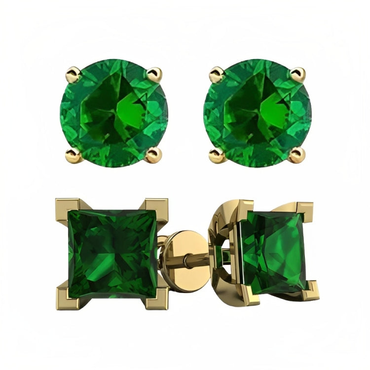 Paris Jewelry 18k Yellow Gold 2 Pair Created Emerald 4mm Round & Princess Cut Stud Earrings PlatedEarrings come elegantly gift boxed. This is amazing fashion style jewelry designed in France. Metal: Yellow Gold Plated Gem Type: Created Emerald CZ Earrings Stone Shape: Round & Square Size: 4mm Stone Color: Green Setting: Prong Setting Number of Stone: 4 Style: Stud Cut Grade: Excellent Closure: Push back Country of Origin: United States- Regular price