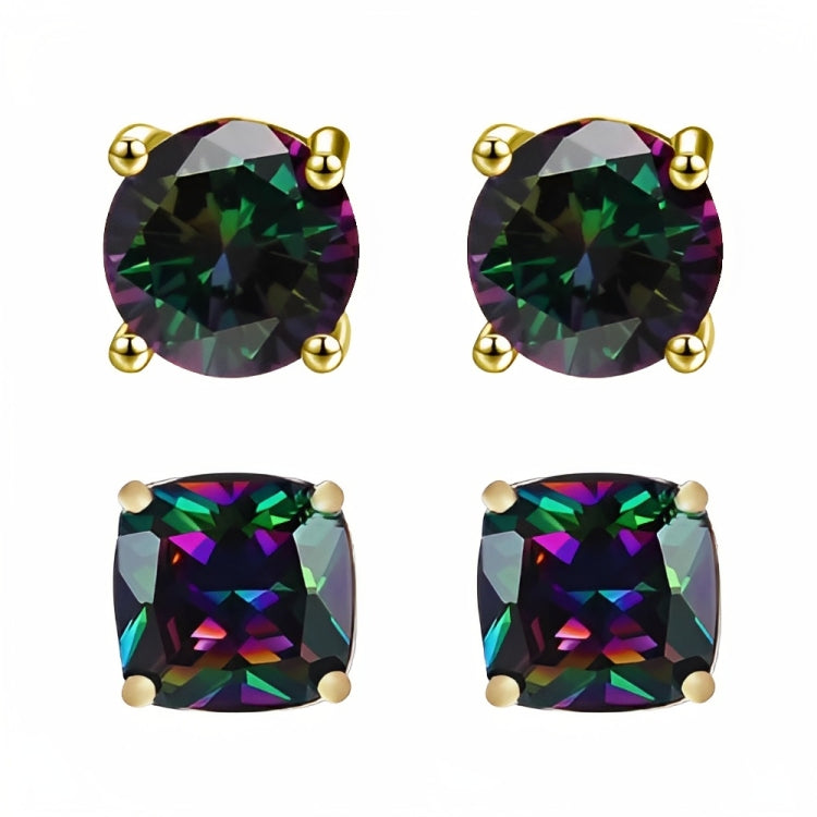 Paris Jewelry 18k Yellow Gold 2 Pair Created Mystic 4mm Round & Princess Cut Stud Earrings PlatedEarrings come elegantly gift boxed. This is amazing fashion style jewelry designed in France. Metal: Yellow Gold Plated Gem Type: Created Mystic CZ Earrings Stone Shape: Round & Square Size: 4mm Stone Color: Multi Color Setting: Prong Setting Number of Stone: 4 Style: Stud Cut Grade: Excellent Closure: Push back Country of Origin: United States- Regular price