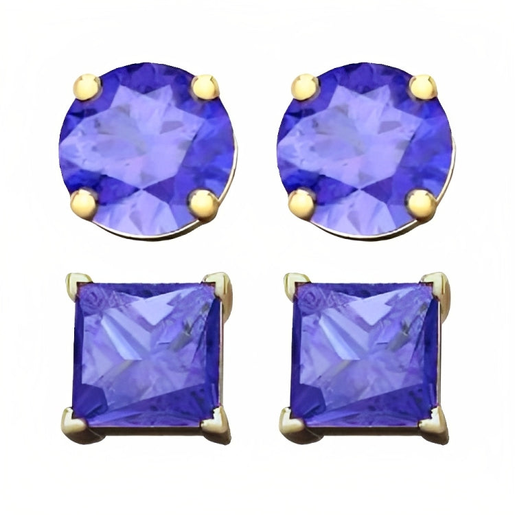 Paris Jewelry 18k Yellow Gold 2 Pair Created Tanzanite 4mm Round & Princess Cut Stud Earrings PlatedEarrings come elegantly gift boxed. This is amazing fashion style jewelry designed in France. Metal: Yellow Gold Plated Gem Type: Created Tanzanite CZ Earrings Stone Shape: Round & Square Size: 4mm Stone Color: Purple Setting: Prong Setting Number of Stone: 4 Style: Stud Cut Grade: Excellent Closure: Push back Country of Origin: United States- Regular price