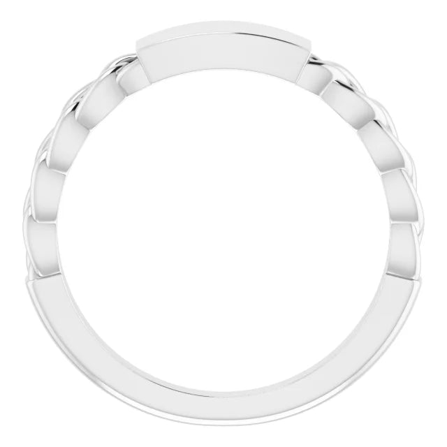 Sterling Silver Engravable Chain Link RingWeight: 2.0357 DWT (3.17 grams) Approx. Shoulder Width: 3.59 mm Approx. Finger Size: 7 Approx. Top Height: 2.1 mm Brand Name: 302 Collection: Utility Plating Type: N/A Surface Finish: Polished Gender: Unisex Selling Unit of Measure: EA Diamond Clarity: N/A Diamond Color: N/A Primary Stone Shape: N/A Ring Fit: Standard Approx. Shank Base Thickness: 1.45 mm Approx. Shank Base Width: 1.87 mm Primary Stone Type: N/A Approx. Top Dimensions: 4.7...- Regular price