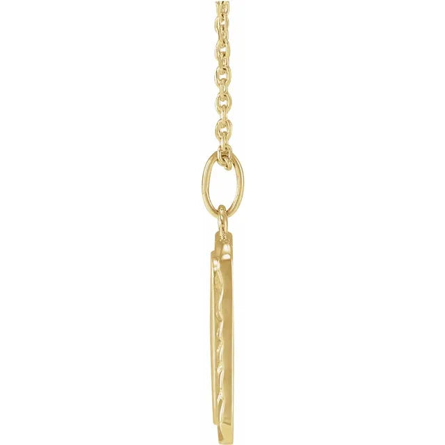 14K Yellow Gold Engravable Sunburst 16-18" NecklaceWeight: 2.3103 DWT (3.59 grams) Clasp Type: Lobster Clasp Selling Unit of Measure: EA Gender: Ladies Plating Type: N/A Chain Width: 1 mm Surface Finish: Bead Blast/Polished Primary Stone Shape: N/A Primary Stone Type: N/A Chain Length: 16-18 In Diamond Clarity: N/A Diamond Color: N/A Pendant Dimensions: 20.02x9.14 mm Chain Style: Cable- Regular price