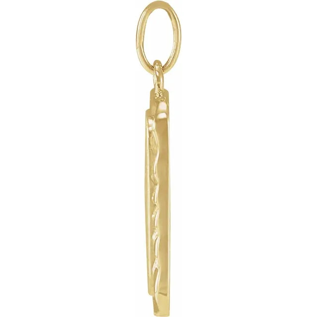 14K Yellow Gold Engravable Sunburst PendantWeight: 1.4333 DWT (2.23 grams) Selling Unit of Measure: EA Gender: Ladies Plating Type: N/A Surface Finish: Bead Blast/Polished Primary Stone Shape: N/A Pendant Dimensions: 20.02x9.14 mm Chain Passage Dimensions: 4x2 mm Diamond Color: N/A Diamond Clarity: N/A Primary Stone Type: N/A Chain Length: N/A- Regular price