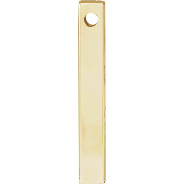 14K Yellow Gold Engravable Four-Sided Vertical Bar PendantWeight: 0.816 DWT (1.27 grams) Brand Name: 302 Material: Gold Selling Unit of Measure: EA Solid/Hollow: Solid Plating Type: N/A Surface Finish: Polished Primary Stone Shape: N/A Pendant Dimensions: 17x2.5 mm Chain Length: N/A Pendant Bail Type: No Bail Diamond Clarity: N/A Primary Stone Type: N/A Diamond Color: N/A- Regular price