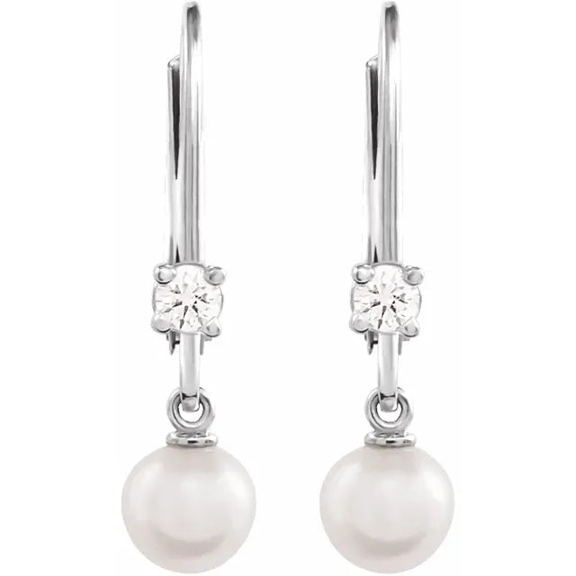 14K White Gold Cultured White Akoya Pearl Lever Back EarringsWeight: 0.6488 DWT (1.01 grams) Earring Back Type Included: Lever Backs Earring Closure: Lever Back Earring Type: Dangle Selling Unit of Measure: PR Gender: Ladies Plating Type: Rhodium-Plated Surface Finish: Polished Primary Stone Shape: Pearl Primary Stone Size: 5 mm Diamond Clarity: I1 Diamond Color: G-H Primary Stone Count: 1-stone Primary Stone Type: Cultured Akoya Pearl Earring Dimensions: 22.72x11.7 mm- Regular price