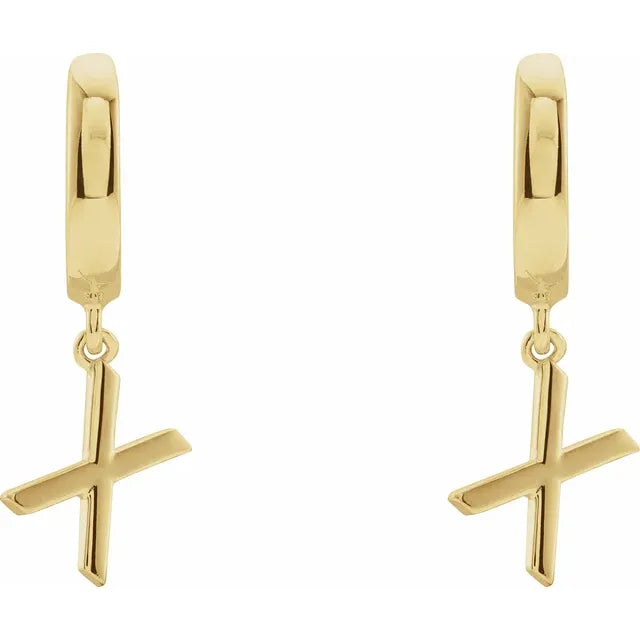 14K Yellow Gold Initial X Hinged Huggie EarringWeight: 0.7796 DWT (1.21 grams) Initial/Number: X Earring Closure: Hinged Post Earring Type: Hoop Brand Name: 302 Collection: Jubilee Design Element: Initial X Material: Gold Selling Unit of Measure: EA Plating Type: N/A Surface Finish: Polished Primary Stone Shape: N/A Diamond Clarity: N/A Earring Dimensions: 20.65x7.6 mm Primary Stone Type: N/A Diamond Color: N/A- Regular price