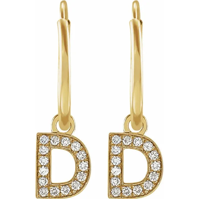 14K Yellow Gold .05 CTW Natural Diamond Single Initial D Hoop EarringWeight: 0.3085 DWT (0.48 grams) Initial/Number: D Earring Back Type Included: N/A Earring Closure: Endless Wire Earring Type: Hoop Brand Name: 302 Collection: Jubilee Selling Unit of Measure: EA Gender: Ladies Plating Type: N/A Primary Stone Type: Natural Diamond Diamond Clarity: I1 Primary Stone Shape: Round Diamond Color: H+ Surface Finish: Polished Earring Dimensions: 18.21x12 mm- Regular price