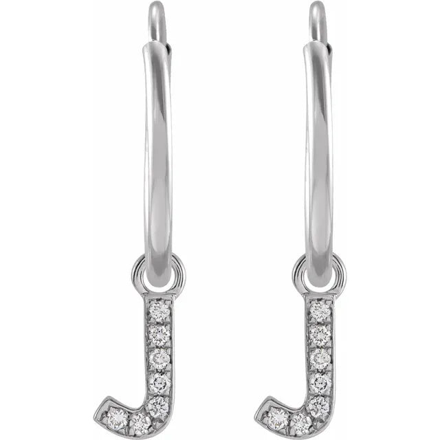 14K White Gold .025 CTW Natural Diamond Single Initial J Hoop EarringWeight: 0.1885 DWT (0.29 grams) Initial/Number: J Earring Back Type Included: N/A Earring Closure: Endless Wire Earring Type: Hoop Brand Name: 302 Collection: Jubilee Selling Unit of Measure: EA Gender: Ladies Plating Type: Rhodium-Plated Surface Finish: Polished Primary Stone Shape: Round Primary Stone Type: Natural Diamond Diamond Color: H+ Diamond Clarity: I1 Earring Dimensions: 18.22x12 mm- Regular price