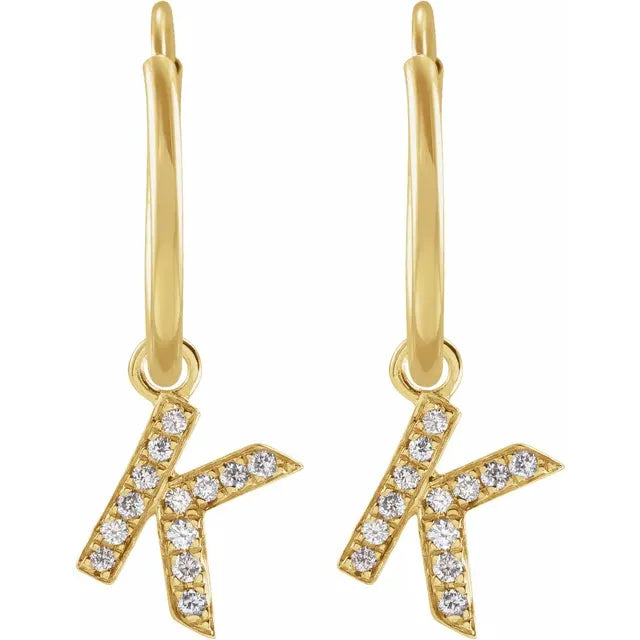 14K Yellow Gold .03 CTW Natural Diamond Single Initial K Hoop EarringWeight: 0.2185 DWT (0.34 grams) Initial/Number: K Earring Back Type Included: N/A Earring Closure: Endless Wire Earring Type: Hoop Brand Name: 302 Collection: Jubilee Selling Unit of Measure: EA Gender: Ladies Plating Type: N/A Surface Finish: Polished Primary Stone Shape: Round Diamond Clarity: I1 Diamond Color: H+ Primary Stone Type: Natural Diamond Earring Dimensions: 17.5x12 mm- Regular price