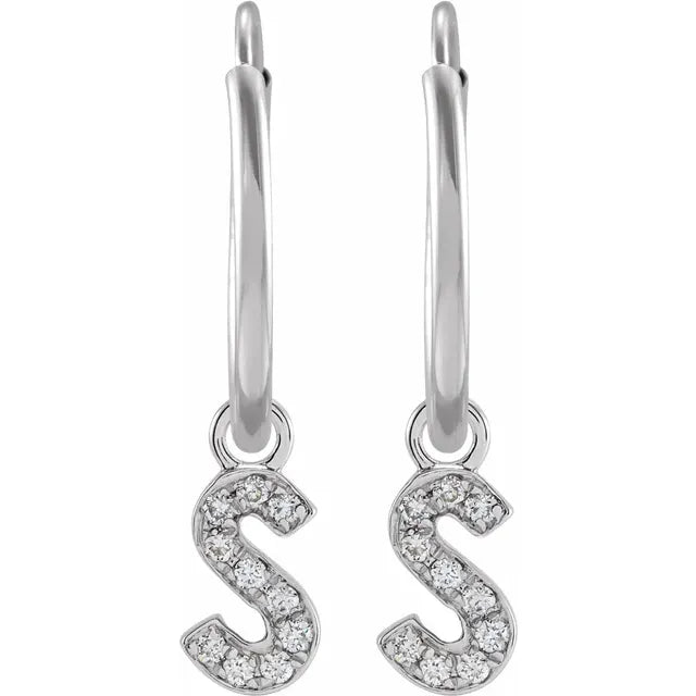 14K White Gold .05 CTW Natural Diamond Single Initial S Hoop EarringWeight: 0.2685 DWT (0.42 grams) Initial/Number: S Earring Back Type Included: N/A Earring Closure: Endless Wire Earring Type: Hoop Brand Name: 302 Collection: Jubilee Selling Unit of Measure: EA Gender: Ladies Plating Type: Rhodium-Plated Surface Finish: Polished Primary Stone Shape: Round Diamond Clarity: I1 Diamond Color: H+ Primary Stone Type: Natural Diamond Earring Dimensions: 18.2x12 mm- Regular price