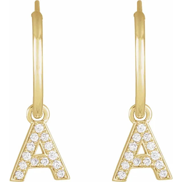 14K Yellow Gold .05 CTW Natural Diamond Single Initial A Hoop EarringWeight: 0.2685 DWT (0.42 grams) Initial/Number: A Earring Back Type Included: N/A Earring Closure: Endless Wire Earring Type: Hoop Brand Name: 302 Collection: Jubilee Selling Unit of Measure: EA Gender: Ladies Plating Type: N/A Surface Finish: Polished Primary Stone Shape: Round Primary Stone Type: Natural Diamond Diamond Clarity: I1 Diamond Color: H+ Earring Dimensions: 18.25x12 mm- Regular price