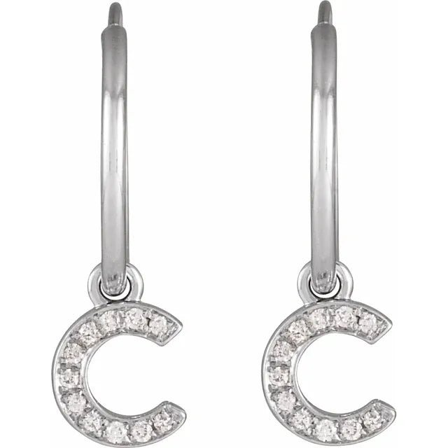 14K White Gold .04 CTW Natural Diamond Single Initial C Hoop EarringWeight: 0.2485 DWT (0.39 grams) Initial/Number: C Earring Back Type Included: N/A Earring Closure: Endless Wire Earring Type: Hoop Brand Name: 302 Collection: Jubilee Diamond Clarity: I1 Primary Stone Shape: Round Primary Stone Type: Natural Diamond Diamond Color: H+ Selling Unit of Measure: EA Gender: Ladies Plating Type: Rhodium-Plated Surface Finish: Polished Earring Dimensions: 18.23x12 mm- Regular price