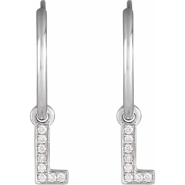 14K White Gold .03 CTW Natural Diamond Single Initial L Hoop EarringWeight: 0.1785 DWT (0.28 grams) Initial/Number: L Earring Back Type Included: N/A Earring Closure: Endless Wire Earring Type: Hoop Brand Name: 302 Collection: Jubilee Selling Unit of Measure: EA Gender: Ladies Plating Type: Rhodium-Plated Surface Finish: Polished Primary Stone Shape: Round Diamond Color: H+ Primary Stone Type: Natural Diamond Diamond Clarity: I1 Earring Dimensions: 18.23x12 mma- Regular price