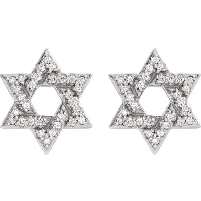 14K White Gold 1/8 CTW Natural Diamond Star of David EarringsWeight: 1.5308 DWT (2.38 grams) Earring Back Type Included: Friction Backs Included Earring Closure: Friction Post and Back Earring Type: Drop Post Diameter: .03 In Post Length: .37 In Plating Type: Rhodium-Plated Surface Finish: Polished Primary Stone Size: .8 mm Primary Stone Shape: Round Earring Post Type: Friction Post Approx. Height: 2.25 mm Selling Unit of Measure: PR Material: Gold Primary Stone Type: Natural Diamond Diamond Color: G-H Primary Stone...- Regular price