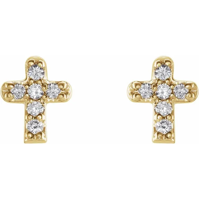 14K Yellow Gold .06 CTW Natural Diamond Youth Cross EarringsWeight: 0.1608 DWT (0.25 grams) Earring Back Type Included: Friction Backs Included Earring Closure: Friction Post and Back Earring Type: Stud Material: Gold Earring Post Type: Friction Post Selling Unit of Measure: PR Primary Stone Size: 1 mm Diamond Clarity: I1 Diamond Color: H+ Surface Finish: Polished Primary Stone Shape: Round Gender: Baby/Youth Plating Type: N/A Earring Dimensions: 5.3x4.6 mm Primary Stone Type: Natural Diamond Total Diamond Carat Weight: .06...- Regular price