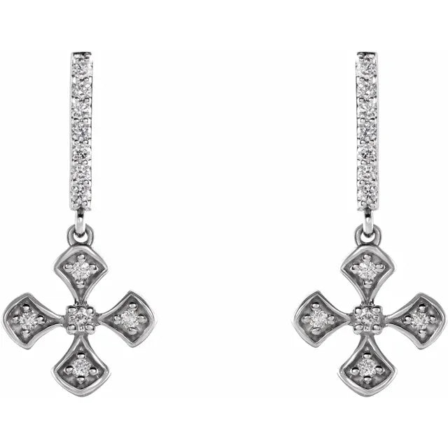 14K White Gold 1/5 CTW Natural Diamond Cross Dangle EarringsWeight: 1.1574 DWT (1.80 grams) Earring Back Type Included: Friction Backs Included Earring Closure: Friction Post and Back Earring Type: Dangle Post Diameter: .82 mm Post Length: .36 In Surface Finish: Polished Diamond Color: H+ Primary Stone Shape: Round Selling Unit of Measure: PR Plating Type: Rhodium-Plated Material: Gold Diamond Clarity: I1 Earring Post Type: Friction Post Total Diamond Carat Weight: 1/5 CTW Primary Stone Type: Natural Diamond Earring Dimensions:...- Regular price