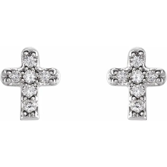 14K White Gold .06 CTW Natural Diamond Youth Cross EarringsWeight: 0.1608 DWT (0.25 grams) Earring Back Type Included: Friction Backs Included Earring Closure: Friction Post and Back Earring Type: Stud Material: Gold Primary Stone Size: 1 mm Surface Finish: Polished Diamond Color: H+ Earring Post Type: Friction Post Diamond Clarity: I1 Plating Type: Rhodium-Plated Primary Stone Shape: Round Selling Unit of Measure: PR Gender: Baby/Youth Earring Dimensions: 5.3x4.6 mm Primary Stone Type: Natural Diamond Total Diamond Carat Weight: 0.06...- Regular price