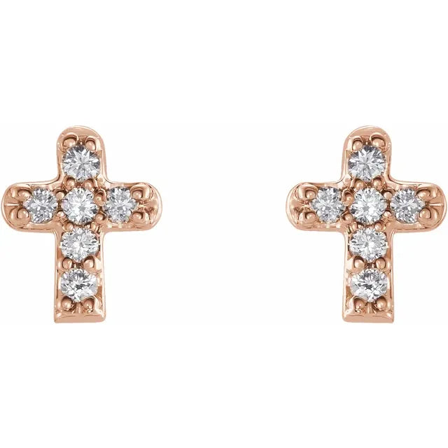 14K Rose Gold .06 CTW Natural Diamond Youth Cross EarringsWeight: 0.1608 DWT (0.25 grams) Earring Back Type Included: Friction Backs Included Earring Closure: Friction Post and Back Earring Type: Stud Material: Gold Selling Unit of Measure: PR Primary Stone Size: 1 mm Earring Post Type: Friction Post Surface Finish: Polished Primary Stone Shape: Round Diamond Color: H+ Diamond Clarity: I1 Total Diamond Carat Weight: 0.06 CTW Gender: Baby/Youth Earring Dimensions: 5.3x4.6 mm Primary Stone Type: Natural Diamond- Regular price
