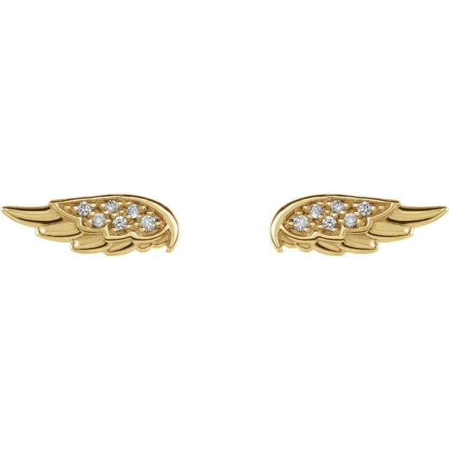 14K Yellow Gold .03 CTW Natural Diamond Angel Wing EarringsWeight: 0.6589 DWT (1.02 grams) Earring Back Type Included: Friction Backs Included Earring Closure: Friction Post and Back Earring Type: Stud Post Diameter: .03 In Post Length: .37 In Plating Type: N/A Earring Post Type: Friction Post Material: Gold Selling Unit of Measure: PR Approx. Length: 3.74 mm Approx. Width: 10.77 mm Approx. Height: 1.38 mm Collection: Believer Brand Name: 302 Design Element: Angel Total Diamond Carat Weight: 0.04 CTW...- Regular price