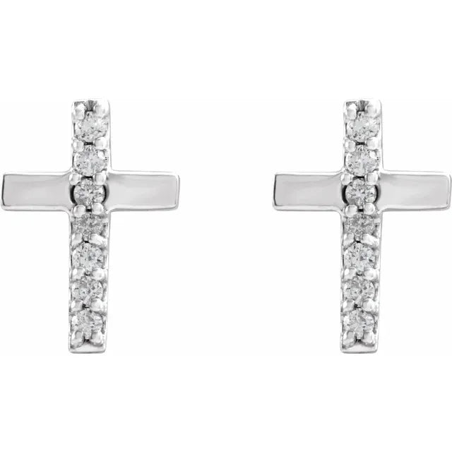 14K White Gold .06 CTW Natural Diamond Cross EarringsWeight: 0.4857 DWT (0.76 grams) Earring Back Type Included: Friction Backs Included Earring Closure: Friction Post and Back Earring Type: Stud Post Diameter: .03 In Post Length: .37 In Material: Gold Diamond Clarity: I1 Earring Post Type: Friction Post Primary Stone Type: Natural Diamond Selling Unit of Measure: PR Primary Stone Shape: Round Primary Stone Count: 14-stone Diamond Color: G-H Plating Type: Rhodium-Plated Surface Finish: Polished Primary Stone Size: 1...- Regular price