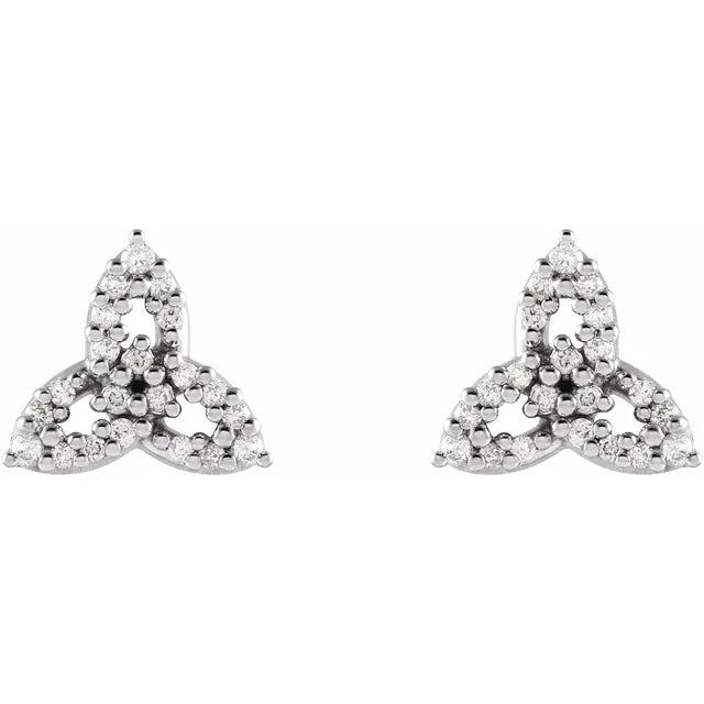 14K White Gold 1/10 CTW Natural Diamond Celtic-Inspired Trinity EarringsWeight: 0.9598 DWT (1.49 grams) Earring Back Type Included: Friction Backs Included Earring Closure: Friction Post and Back Earring Type: Stud Post Diameter: .03 In Post Length: .37 In Total Diamond Carat Weight: 1/10 CTW Plating Type: Rhodium-Plated Surface Finish: Polished Earring Post Type: Friction Post Earring Dimensions: 8.04x7.22 mm Gender: Ladies Selling Unit of Measure: PR Primary Stone Shape: Round Primary Stone Type: Natural Diamond Diamond Clarity: I1 Diamond...- Regular price