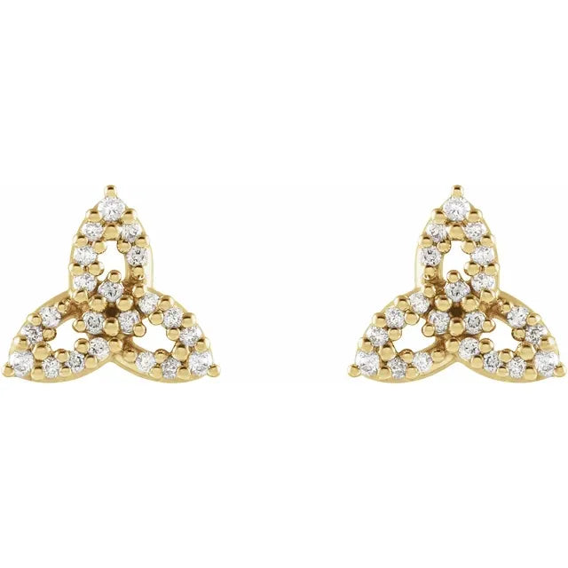 14K Yellow Gold 1/10 CTW Natural Diamond Celtic-Inspired Trinity EarringsWeight: 0.9732 DWT (1.51 grams) Earring Back Type Included: Friction Backs Included Earring Closure: Friction Post and Back Earring Type: Stud Post Diameter: .03 In Post Length: .37 In Total Diamond Carat Weight: 1/10 CTW Earring Post Type: Friction Post Plating Type: N/A Surface Finish: Polished Earring Dimensions: 8.04x7.22 mm Selling Unit of Measure: PR Gender: Ladies Primary Stone Shape: Round Diamond Color: G-H Primary Stone Type: Natural Diamond Diamond...- Regular price