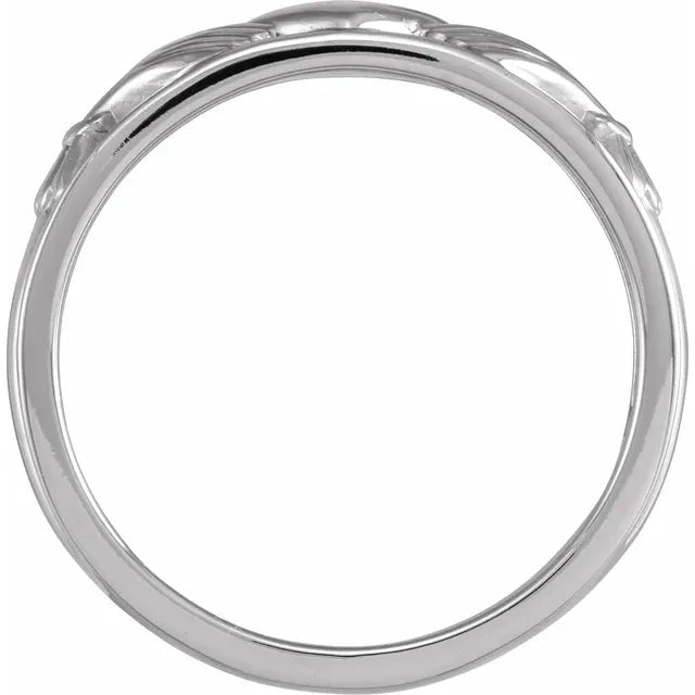 Sterling Silver Celtic RingWeight: 5.119 DWT (7.96 grams) Approx. Finger Size: 10 Approx. Top Height: 3.74 mm Selling Unit of Measure: EA Ring Fit: Standard Approx. Shank Base Thickness: 1.5 mm Approx. Shank Base Width: 3.24 mm Approx. Top Dimensions: 7.84 mm Primary Stone Type: N/A Primary Stone Shape: N/A Diamond Clarity: N/A Diamond Color: N/A Gender: Mens Surface Finish: Polished Plating Type: N/A- Regular price