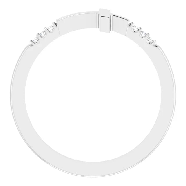 Sterling Silver .025 CTW Diamond Stackable Sideways Cross RingWeight: 1.3836 DWT (2.15 grams) Approx. Shoulder Width: 1.4 mm Approx. Finger Size: 7 Approx. Top Height: 2.18 mm Design Element: Cross Surface Finish: Polished Gender: Ladies Primary Stone Shape: Round Approx. Shank Base Thickness: 1.64 mm Primary Stone Size: 1.1 mm Solid/Hollow: Solid Approx. Shank Base Width: 1.07 mm Ring Fit: Standard Selling Unit of Measure: EA Plating Type: Rhodium-Plated Diamond Color: G-H Total Diamond Carat Weight: 0.025 CTW...- Regular price