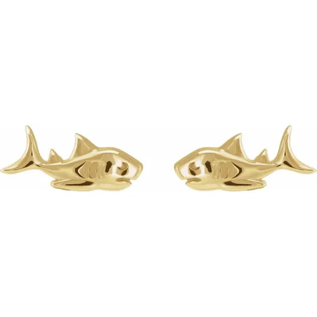 14K Yellow Gold Pair Shark Stud EarringsWeight: 0.664 DWT (1.03 grams) Earring Back Type Included: Friction Backs Included Earring Closure: Friction Post and Back Earring Type: Stud Post Diameter: .03 In Post Length: .37 In Selling Unit of Measure: PR Gender: Ladies Plating Type: N/A Earring Post Type: Friction Post Surface Finish: Polished Primary Stone Shape: N/A Diamond Clarity: N/A Diamond Color: N/A Primary Stone Type: N/A Earring Dimensions: 10.42x4.21 mm- Regular price